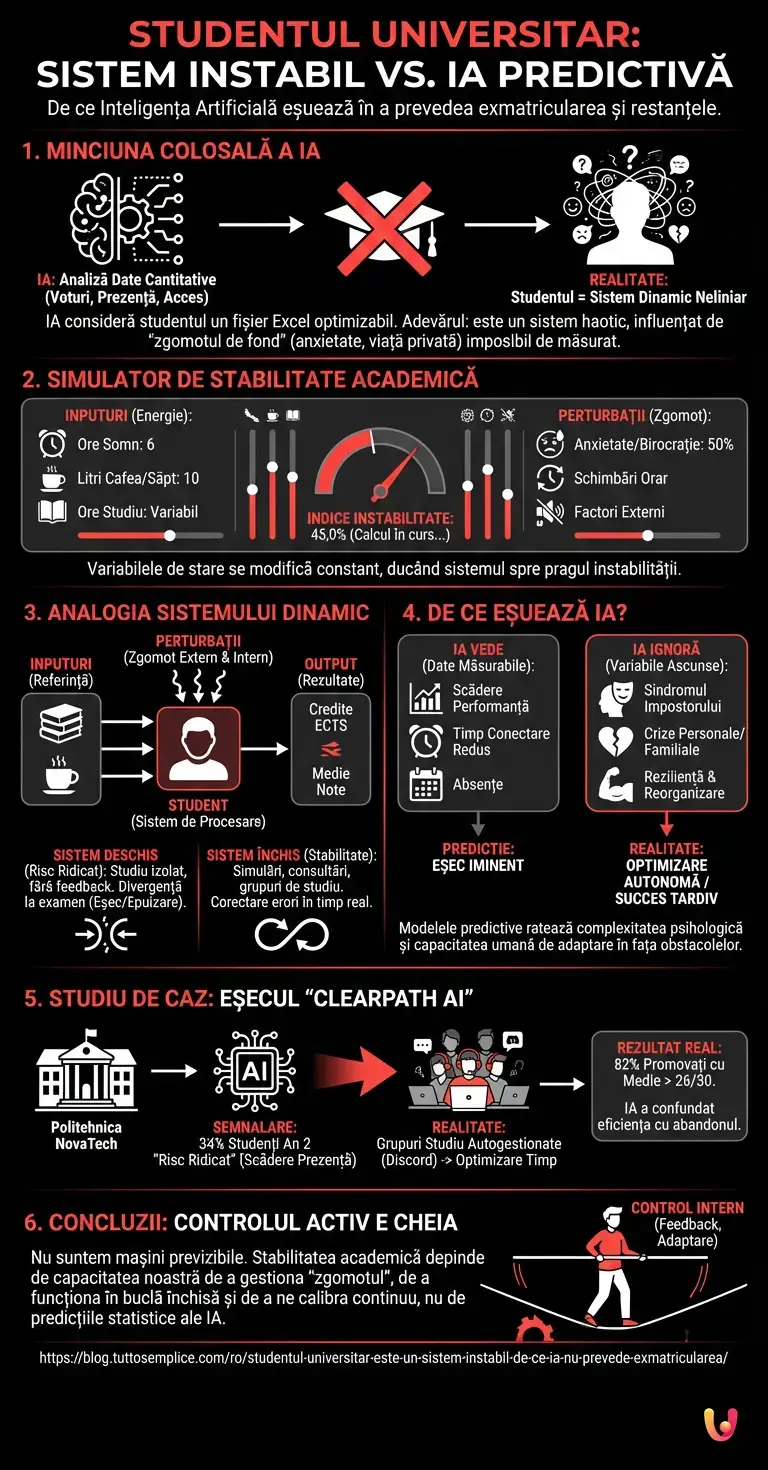 Descoperă de ce inteligența artificială eșuează în a prezice studentul care întârzie la absolvire. O analiză inginerească între sisteme dinamice,…