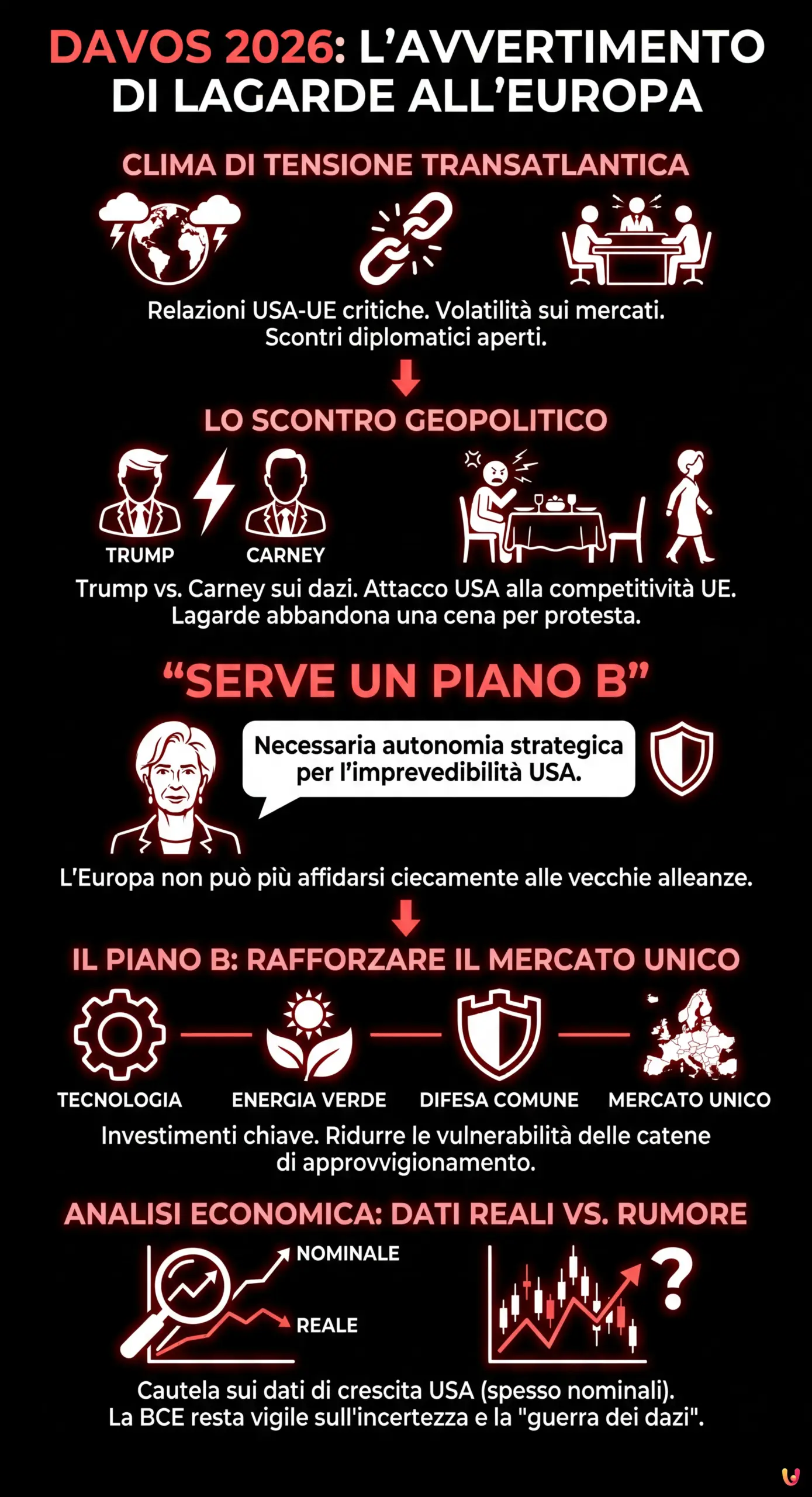 Christine Lagarde chiude Davos 2026 con un monito: necessario un piano B per l’UE. Tensioni con gli USA di Trump…