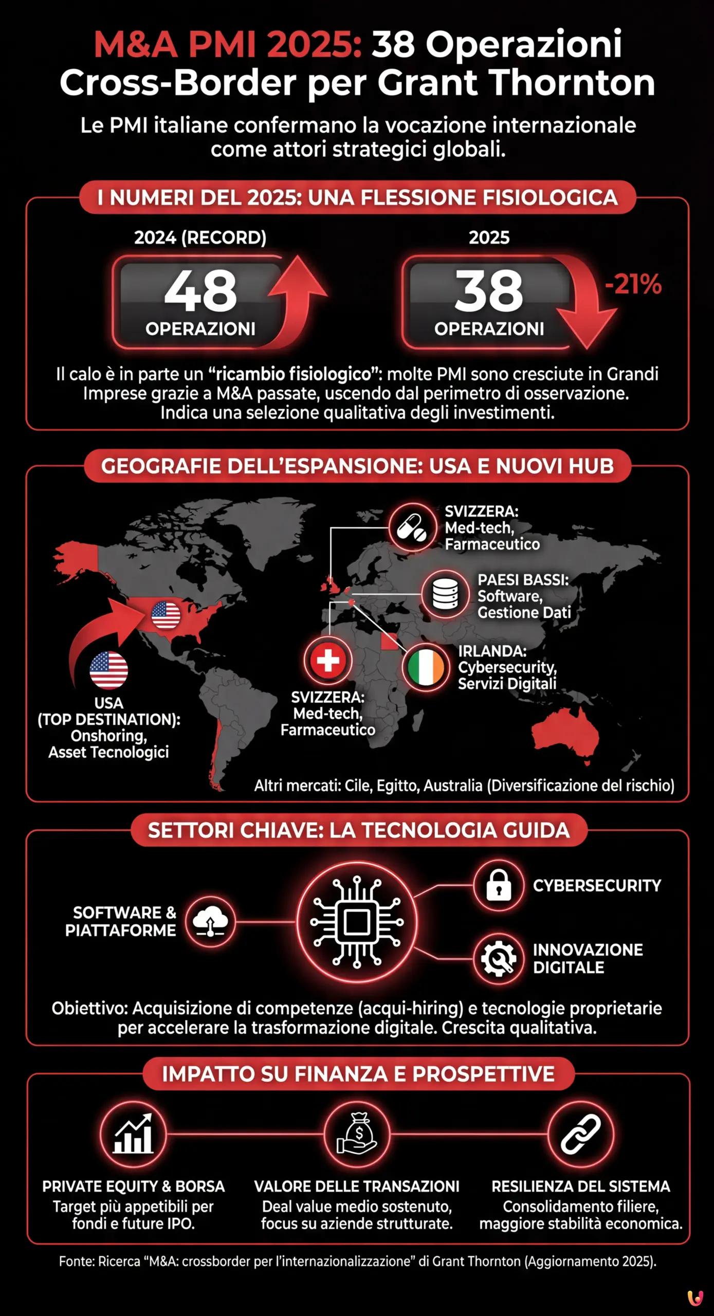 Report Grant Thornton 2025: 38 deal M&A cross-border per le PMI italiane. Analisi su economia, finanza e investimenti esteri delle…