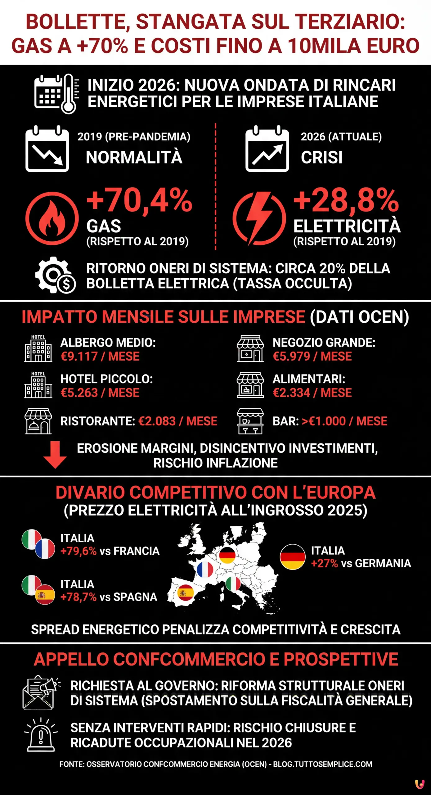 Allarme Confcommercio sui rincari energia nel 2026: bollette gas +70% sul 2019. Per negozi e hotel costi insostenibili. Pesano gli…