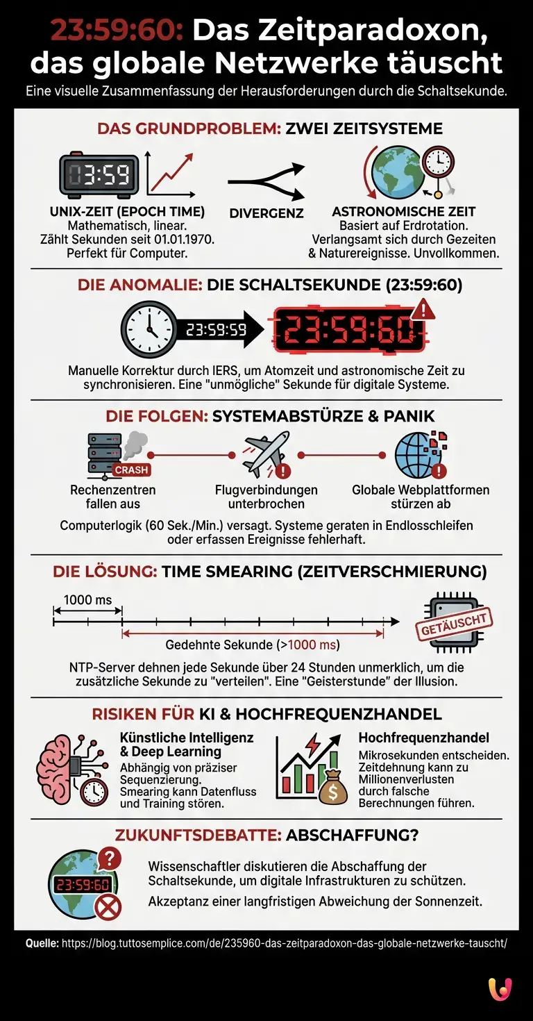 23:59:60: Das Zeitparadoxon, das globale Netzwerke täuscht.