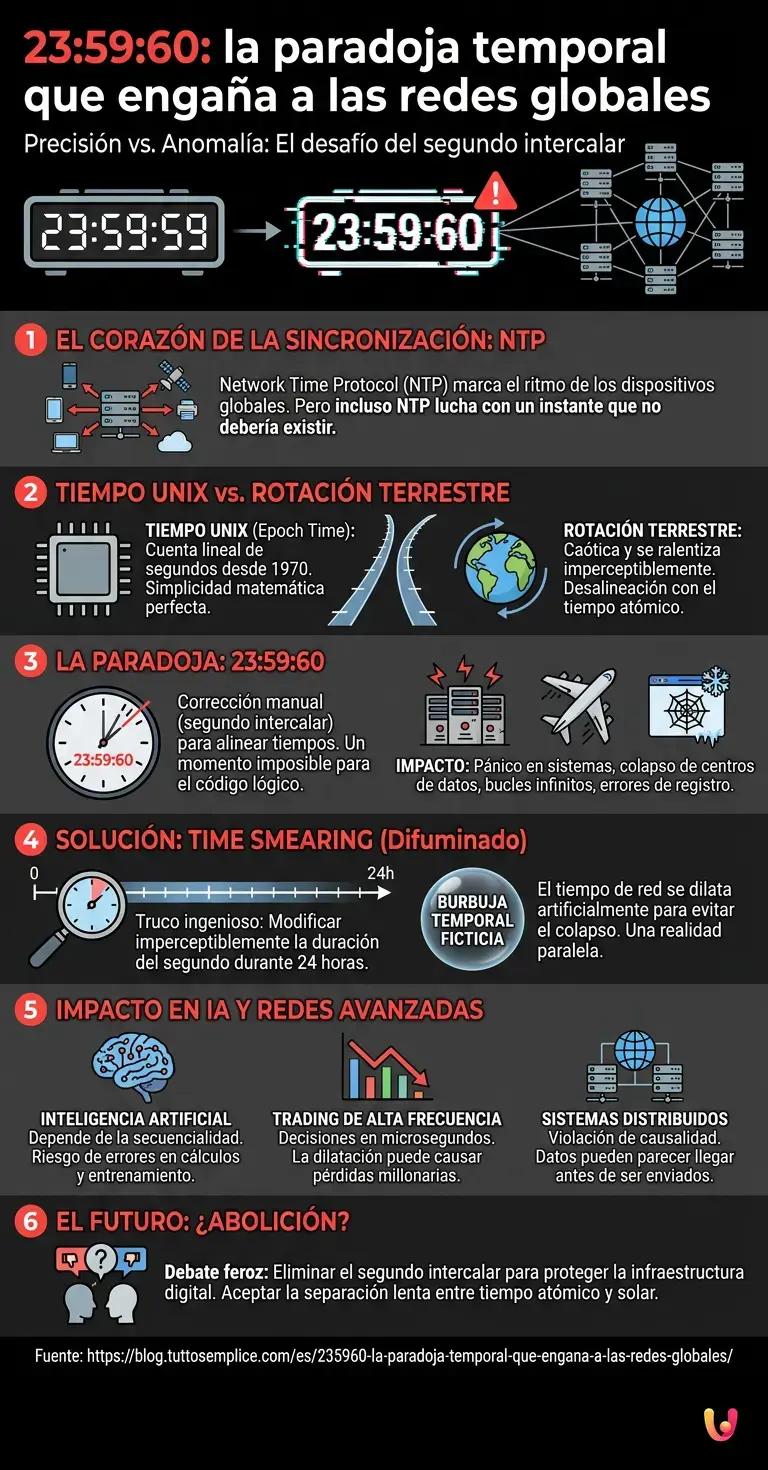 Descubre el instante en que los servidores y las redes globales pierden la noción del tiempo. Un viaje entre algoritmos…