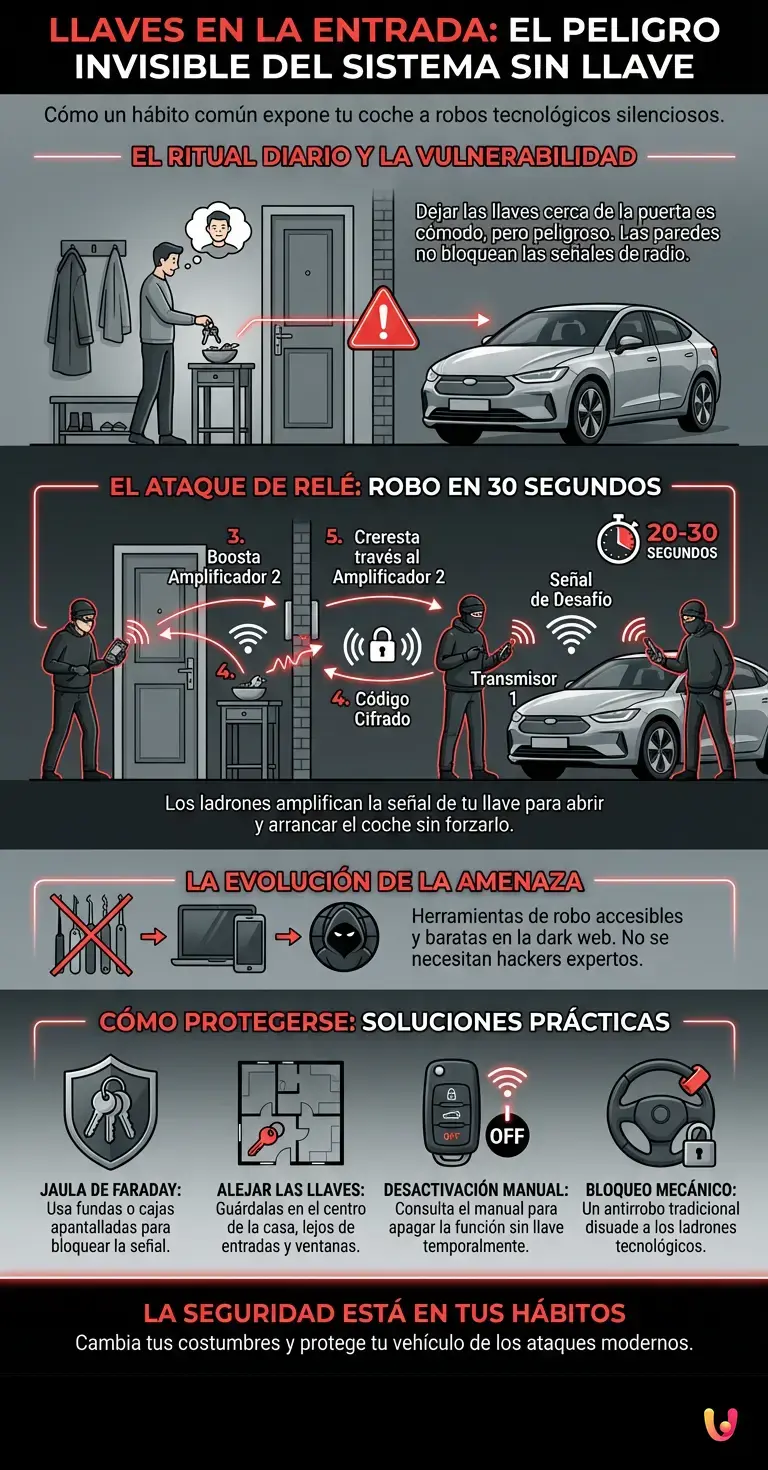 Llaves en la entrada: la falla del sistema sin llave que te hace desaparecer el coche